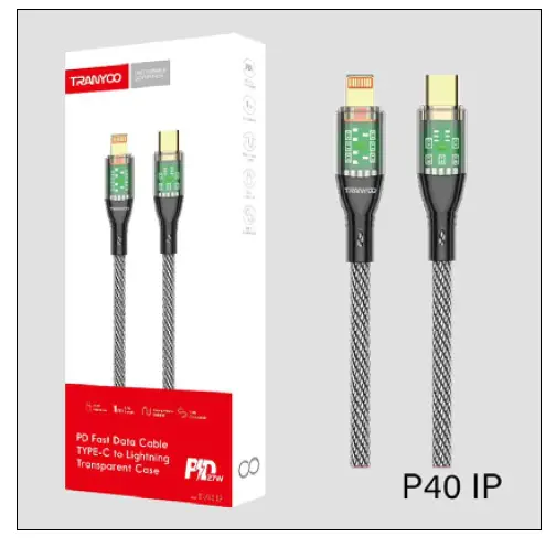 چراغ نمایشگر سری با روکش طلایی طول کابل 1 متر پشتیبانی همزمان شارژ و انتقال داده ها سوپر فست شارژ توان 60 وات Type C و 27 وات IPHONE جنس کابل کنفی سازگاری با تمامی دستگاهها